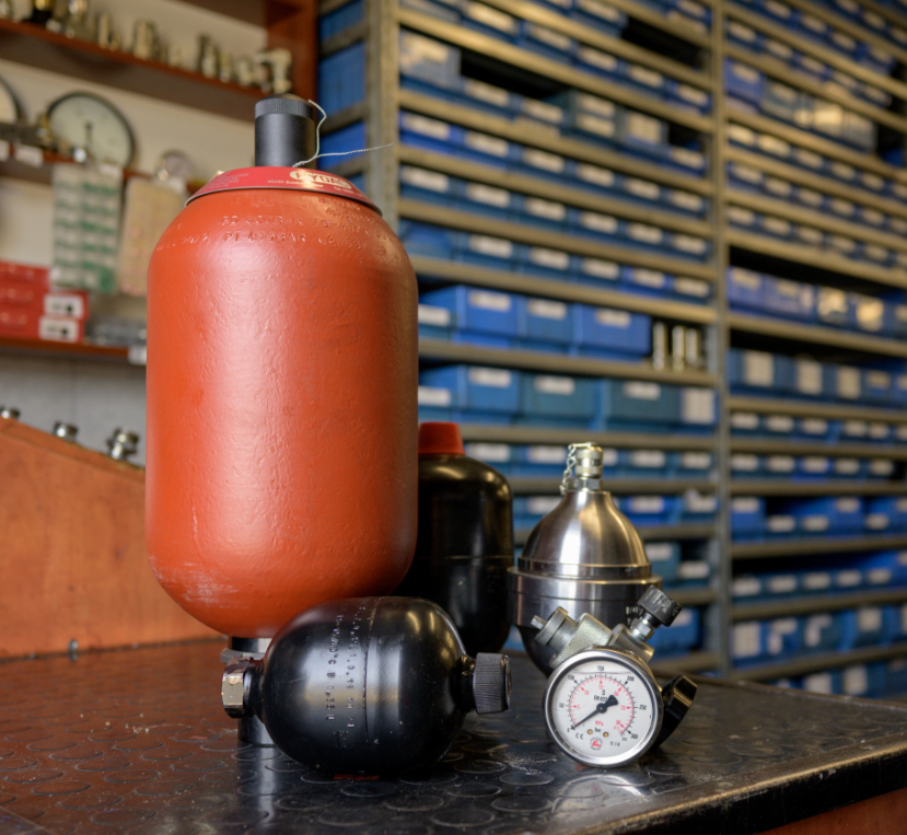 Amortyzacja: Kiedy w układzie pojawia się nagły skok ciśnienia, gaz wakumulatorze kompresuje się, pochłaniając uderzenie.