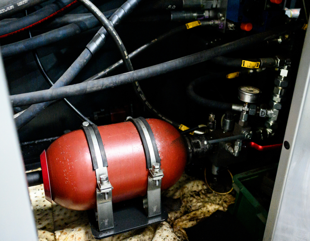 Oddawanie energii: Gdy pompa nie nadąża lub potrzebny jest nagły zrzutmocy, rozprężający się azot „wypycha” olej, wspomagając pracę maszyny.